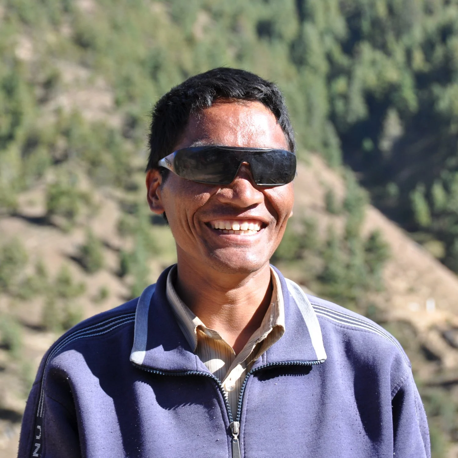 I greeted him in English and he laughed, unaccustomed to my foreign speech. He tilted his head in the peculiar way that blind people do, looking at me from that space between his ear and his eye. His sunglasses, askew and greasy, reflected the dim glow of a cooking fire that burned just inside the home. The teapot boiled over, and he knew it before any of us. He said something in Nepali, and someone scrambled inside to lift the hissing kettle from the fire.